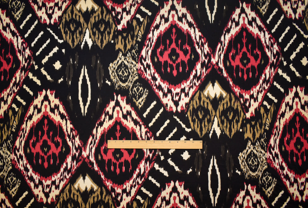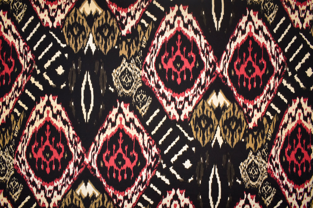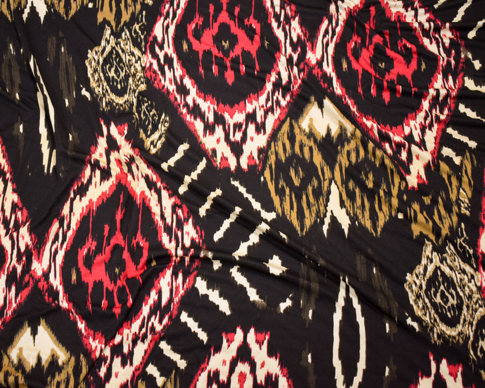 Black-Multi Abstract Diamond Ikat Printed Stretch Silk Jersey Knit Fabric