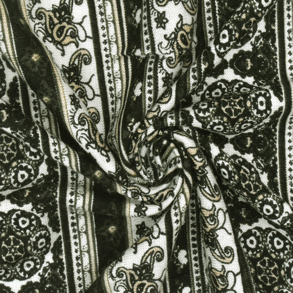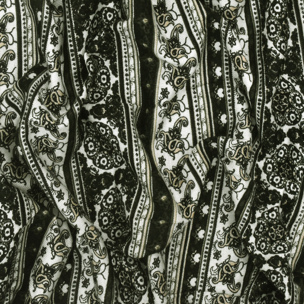 Black-Multi Mixed Pattern Stripe Printed Rayon Stretch Jersey Knit Fabric