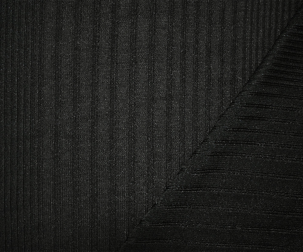-Black Poly Stretch Spandex Multi Rib Knit Fabric