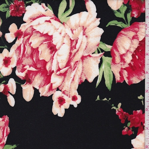 Black/Red Dogwood Double Brushed Jersey Knit Fabric
