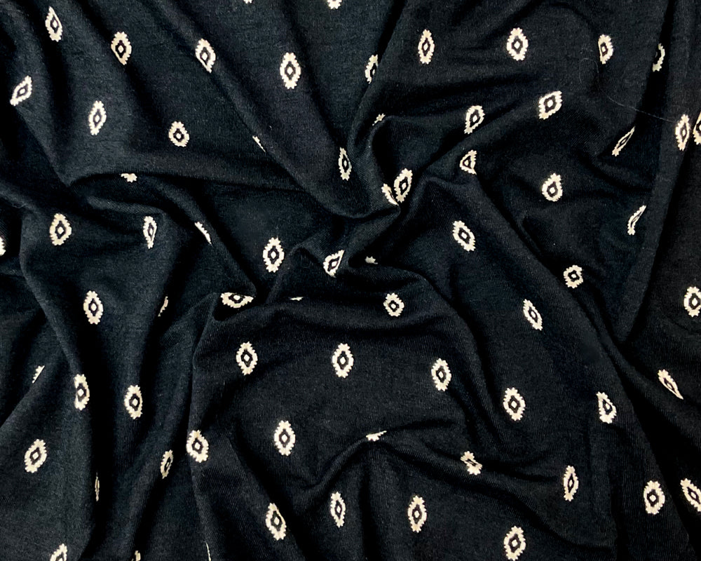 Black-White Cotton Stretch Spandex Aztec Printed Jersey Knit Fabric