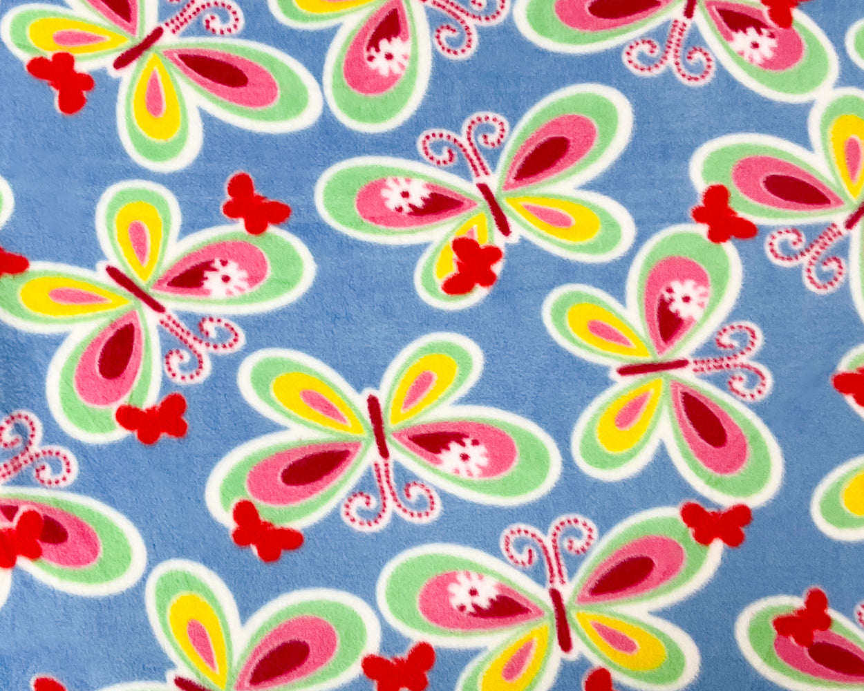 -325G/Y, Blue-Green-Multi Polyester Butterfly Printed Polar Fleece Knit Fabric