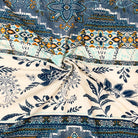 Blue-Multi Stretch Aztec Stripe Print Slub Knit Fabric