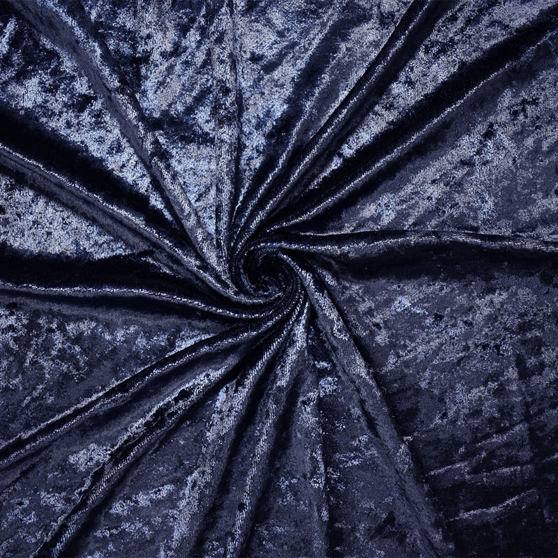 Blue Poly Stretch Spandex Solid Crushed Velvet Knit Fabric