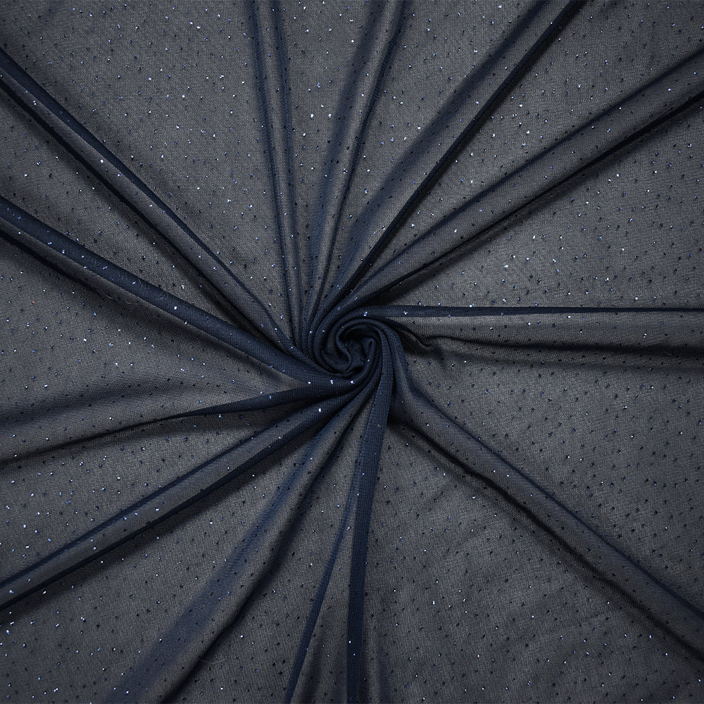 -Blue Polyester Metallic Stretch Spandex Sparkle Dot Mesh Knit Fabric