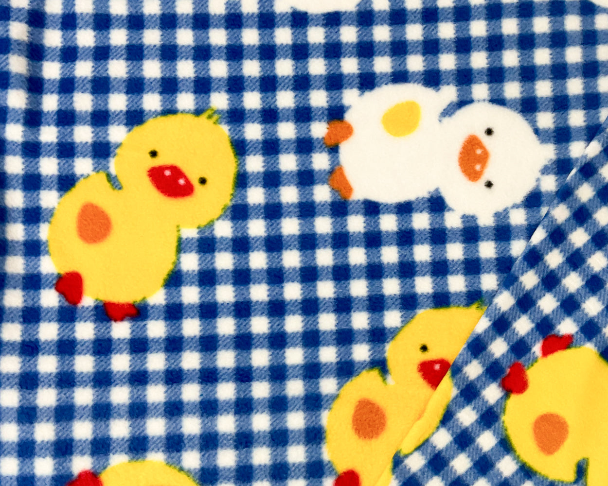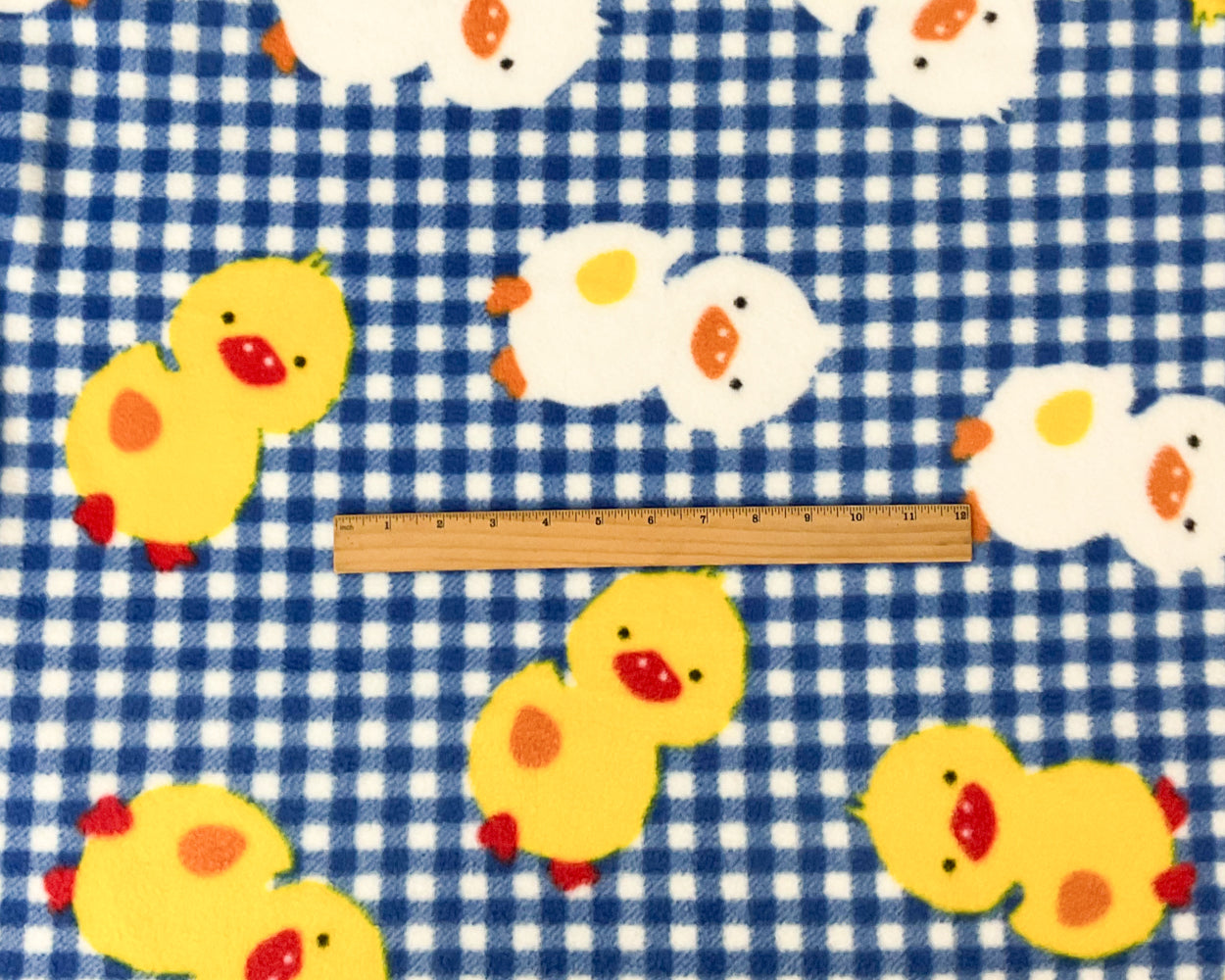 -325G/Y, Blue-White-Multi Polyester Duck Check Printed Polar Fleece Knit Fabric
