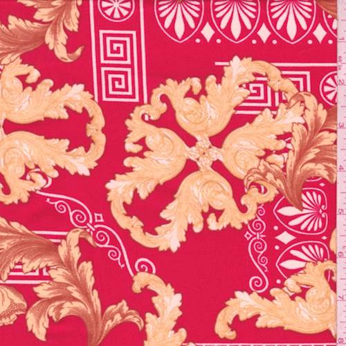 Bright Red/Gold Baroque Double Brushed Jersey Knit Fabric