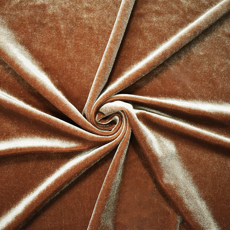 Brown Poly Stretch Spandex Solid Velvet Knit Fabric