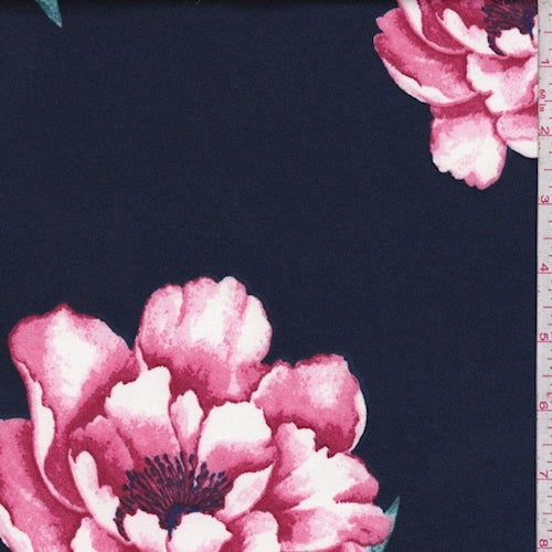 Deep Blue Peony Bloom Techno Scuba Knit Fabric