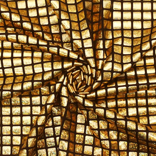 Gold/Black Grid Foil Printed Stretch Activewear Knit Fabric