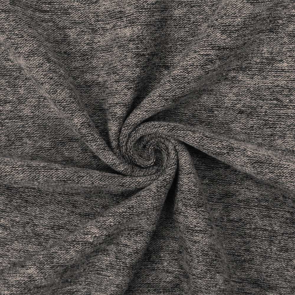 Gray-Black Slub Stretch Poly Blend Brushed Back Jersey Knit Fabric
