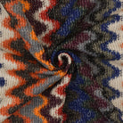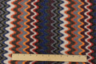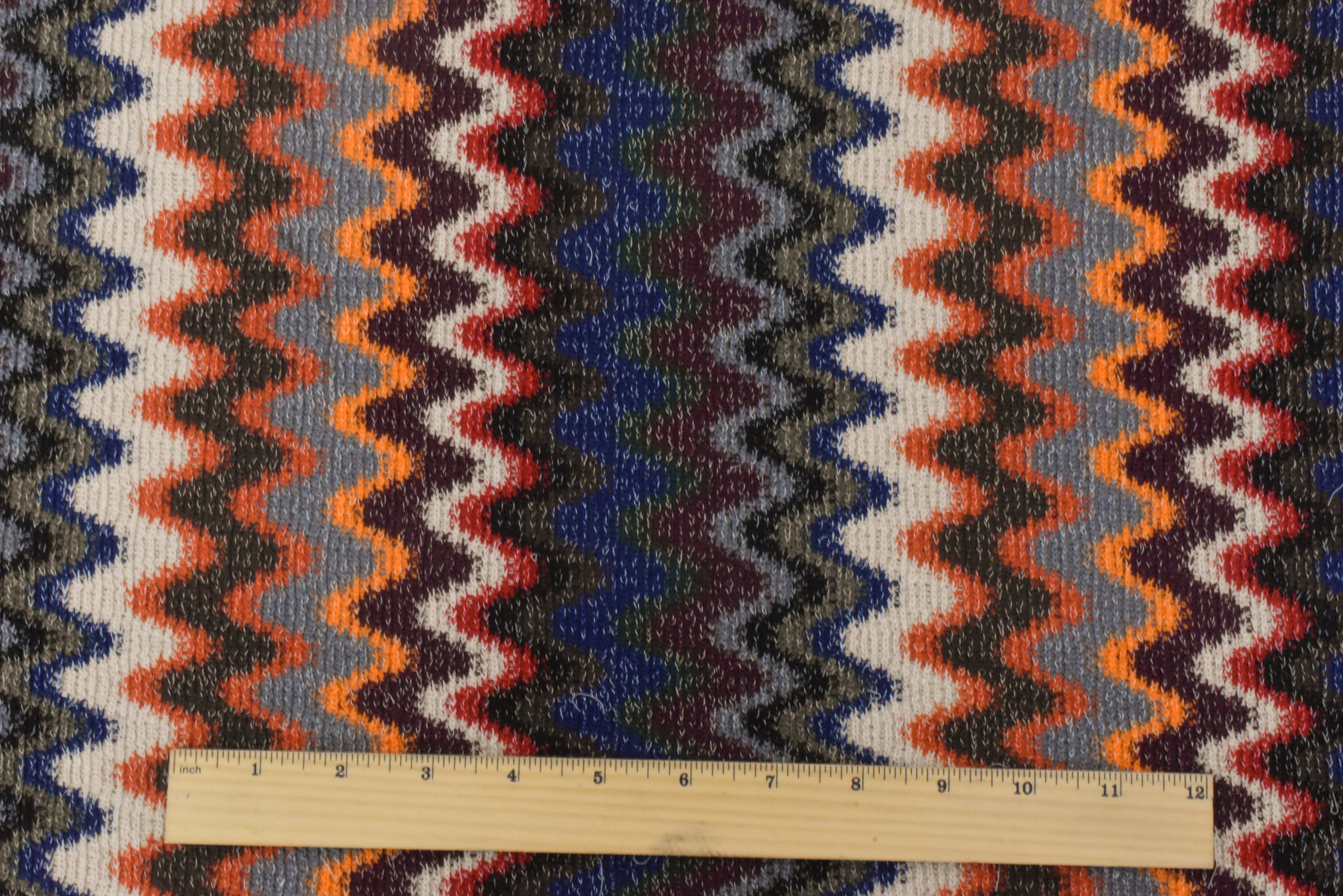 -Eyelash sweater knit fabric with a multicolored chevron wave-like pattern, line if needed.