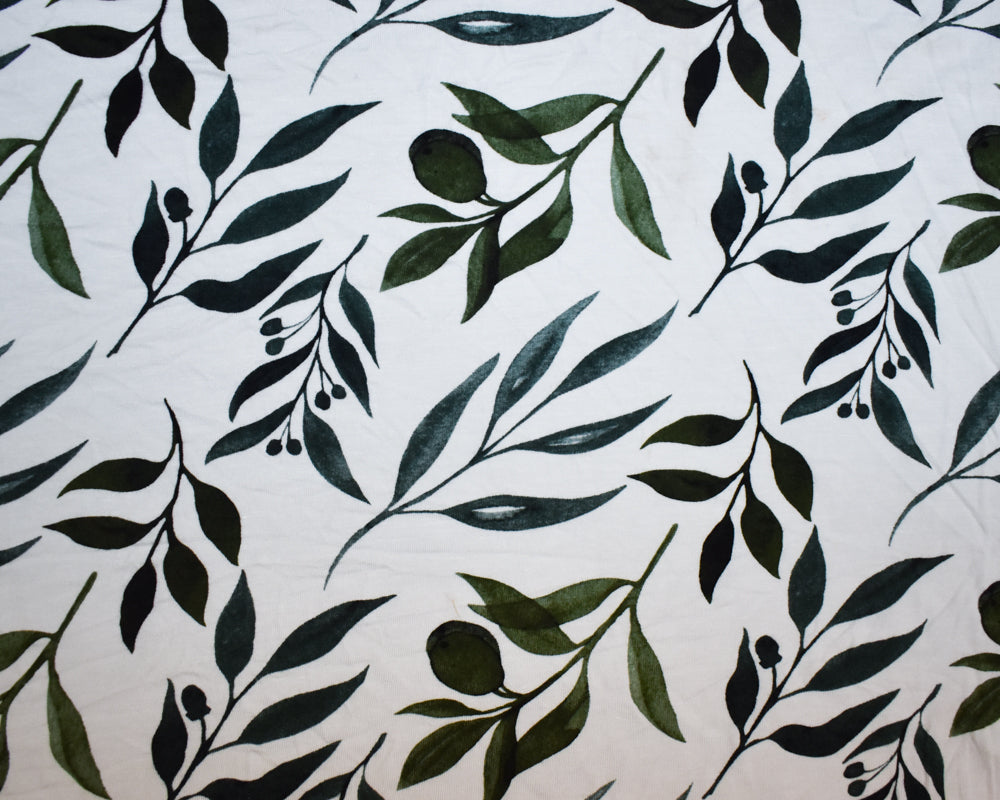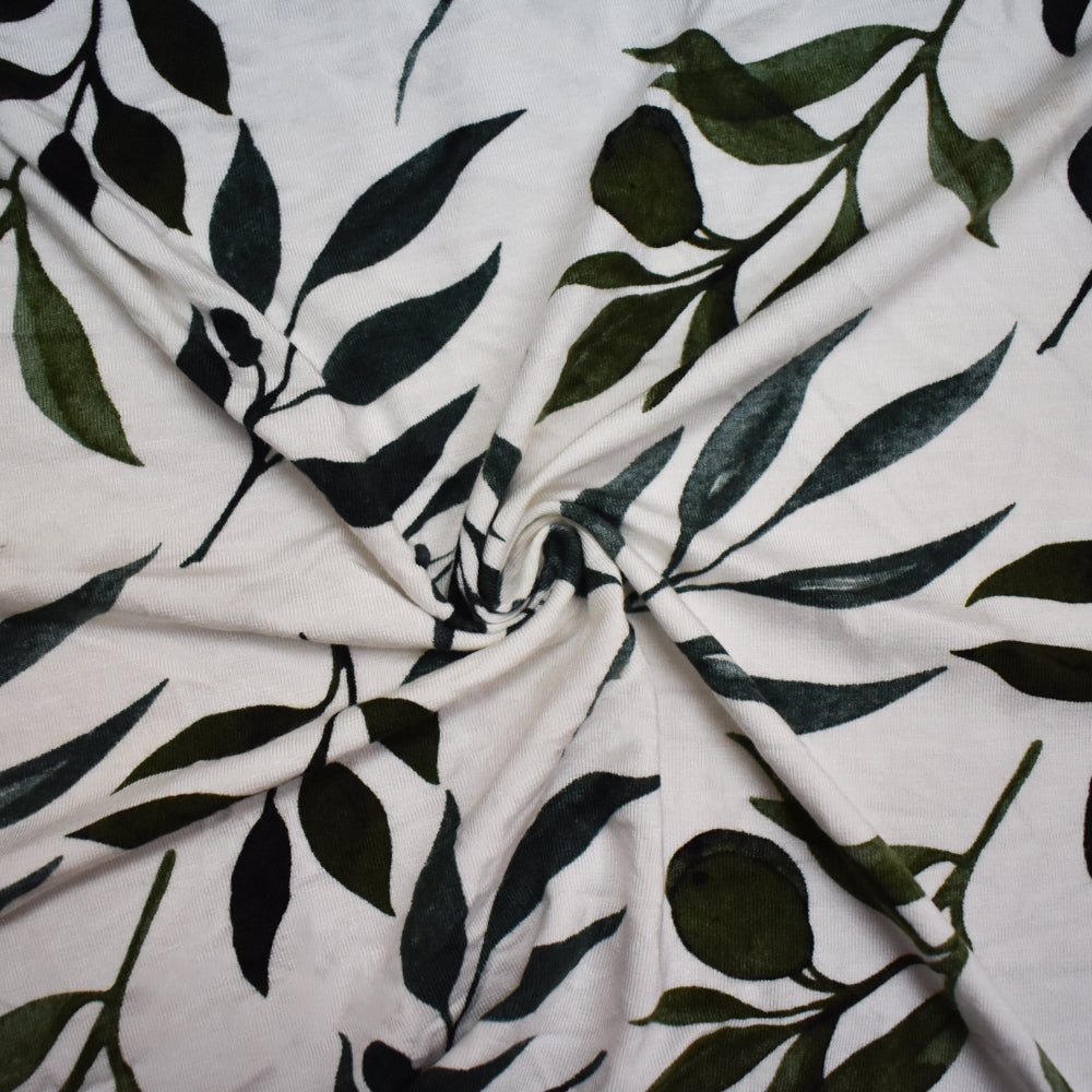 Green-White Rayon Modal Leaves Printed Stretch Spandex Jersey Knit Fabric