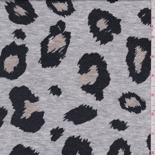 Heather Grey Leopard French Terry Knit Fabric