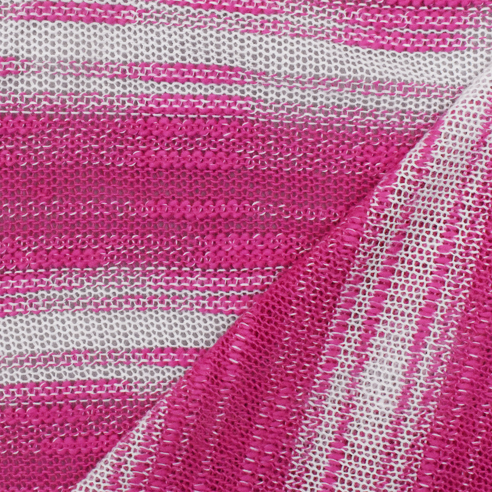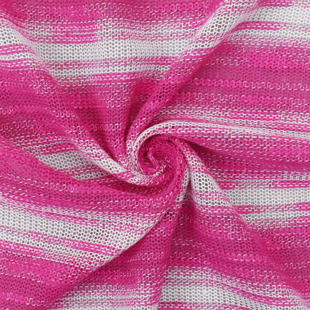 Hot Pink-White Slub Stripe Poly Rayon Jersey Knit Fabric