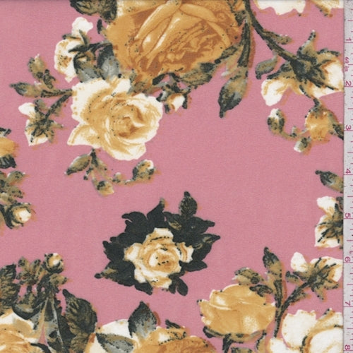 ITY Salmon/Gold Rose Jersey Knit Fabric