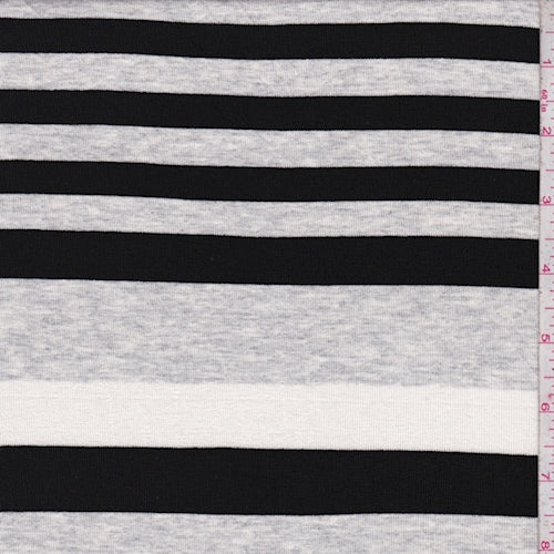 Light Grey/Black/White Stripe Rayon Jersey Knit Fabric