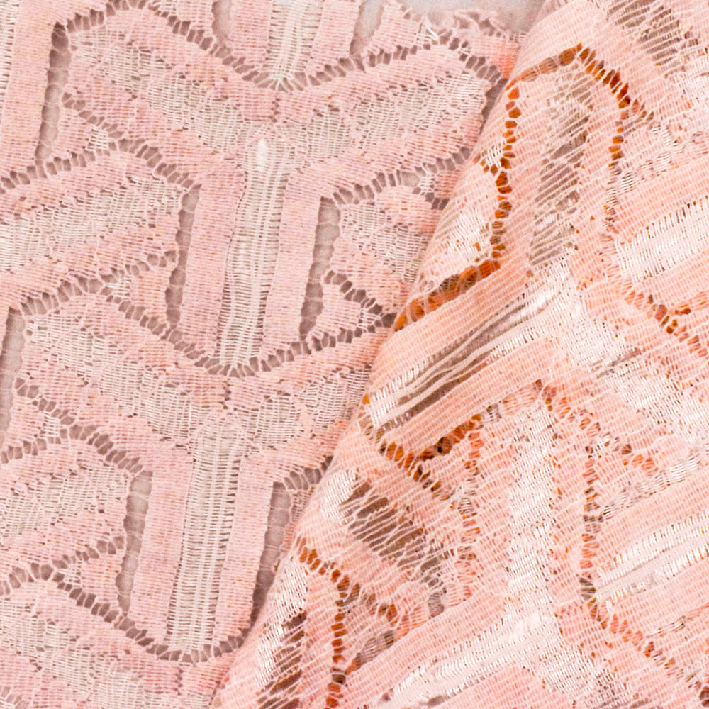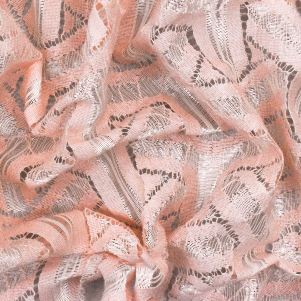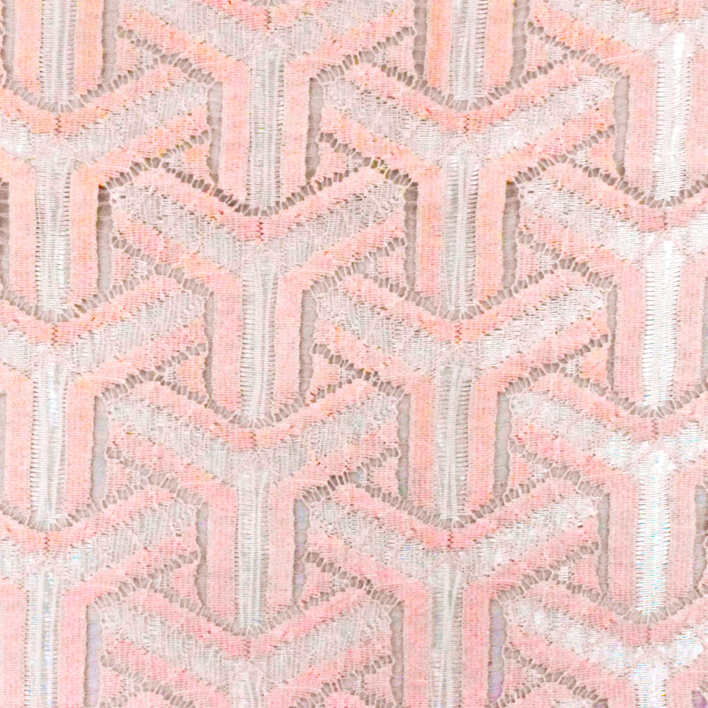 Light Pink-Pearl White Abstract Pinwheel Lace Knit Fabric
