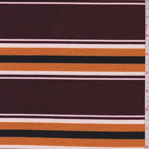 Maroon/Pumpkin Stripe Double Brushed French Terry Knit Fabric