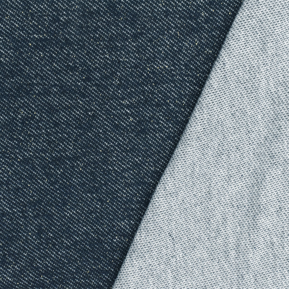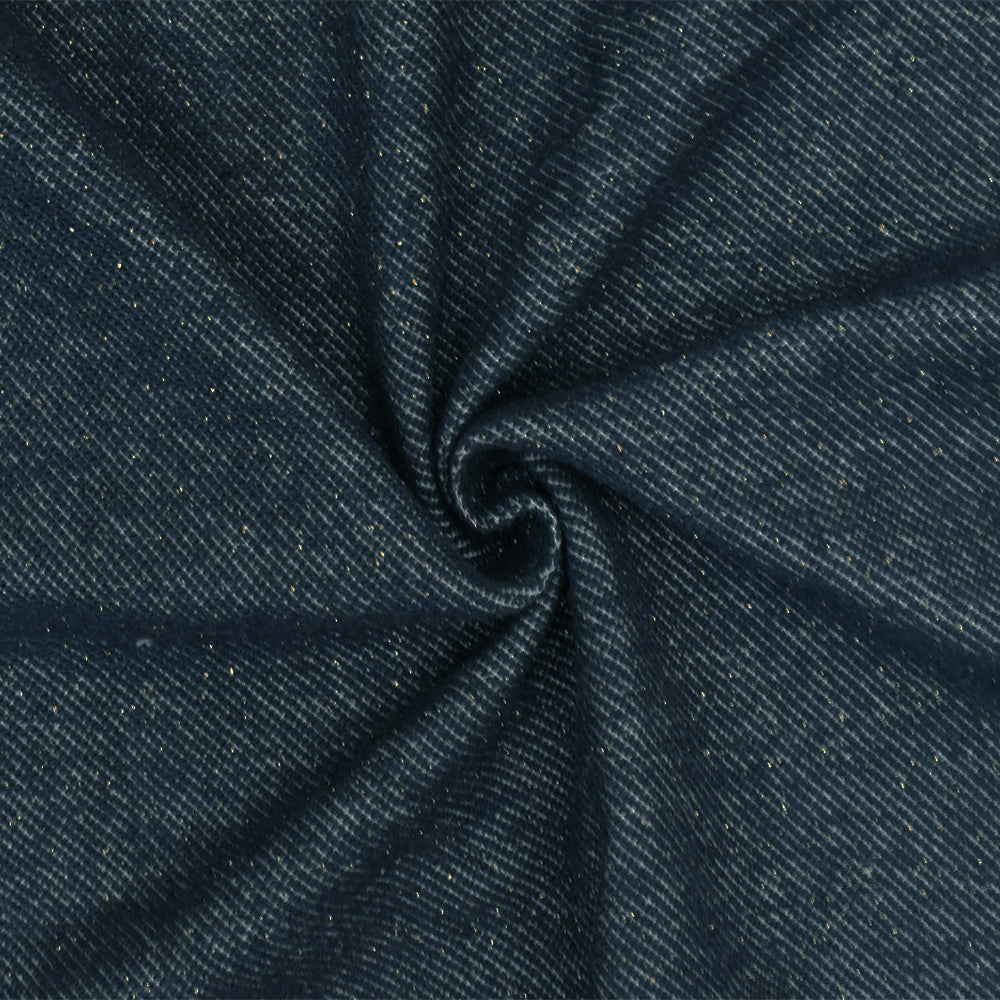 Navy Blue-Gold Sparkle Twill-Like Double Knit Fabric