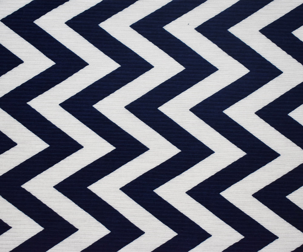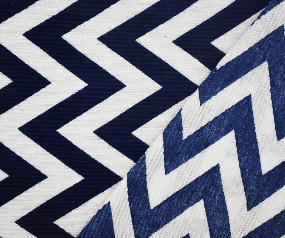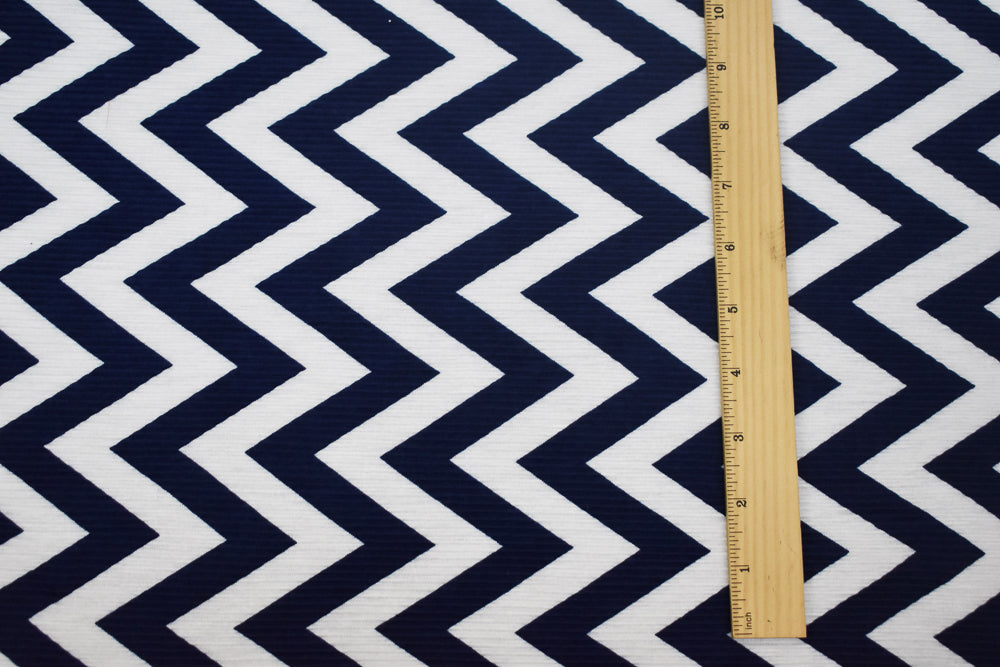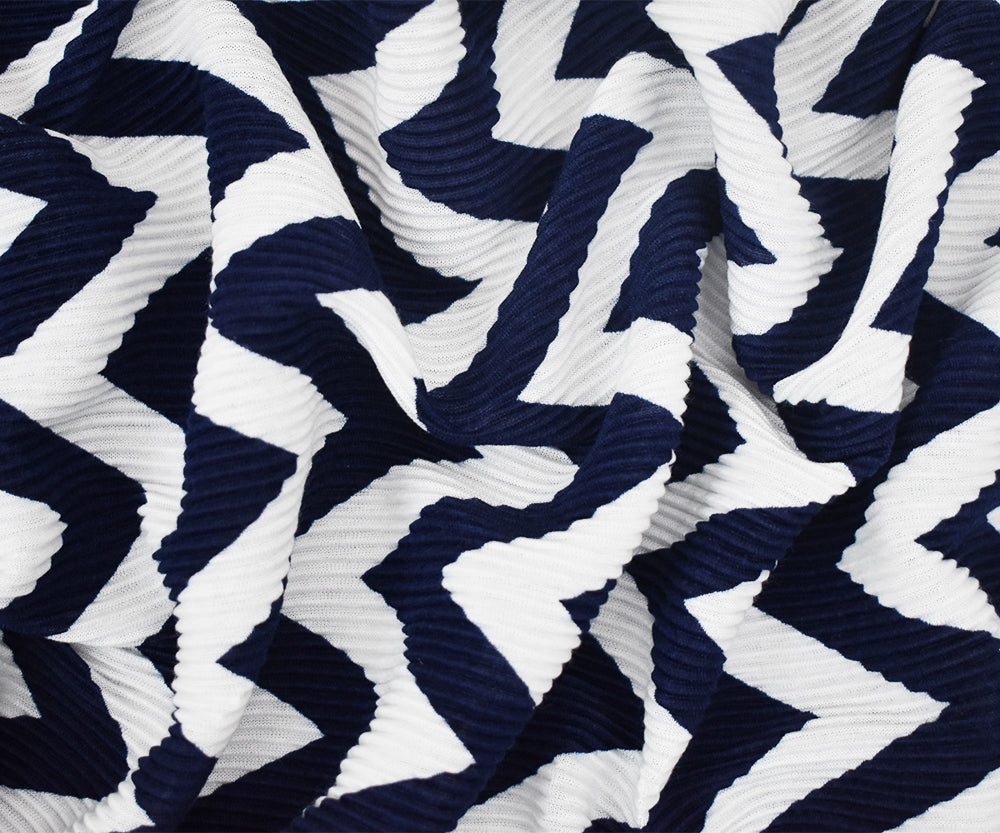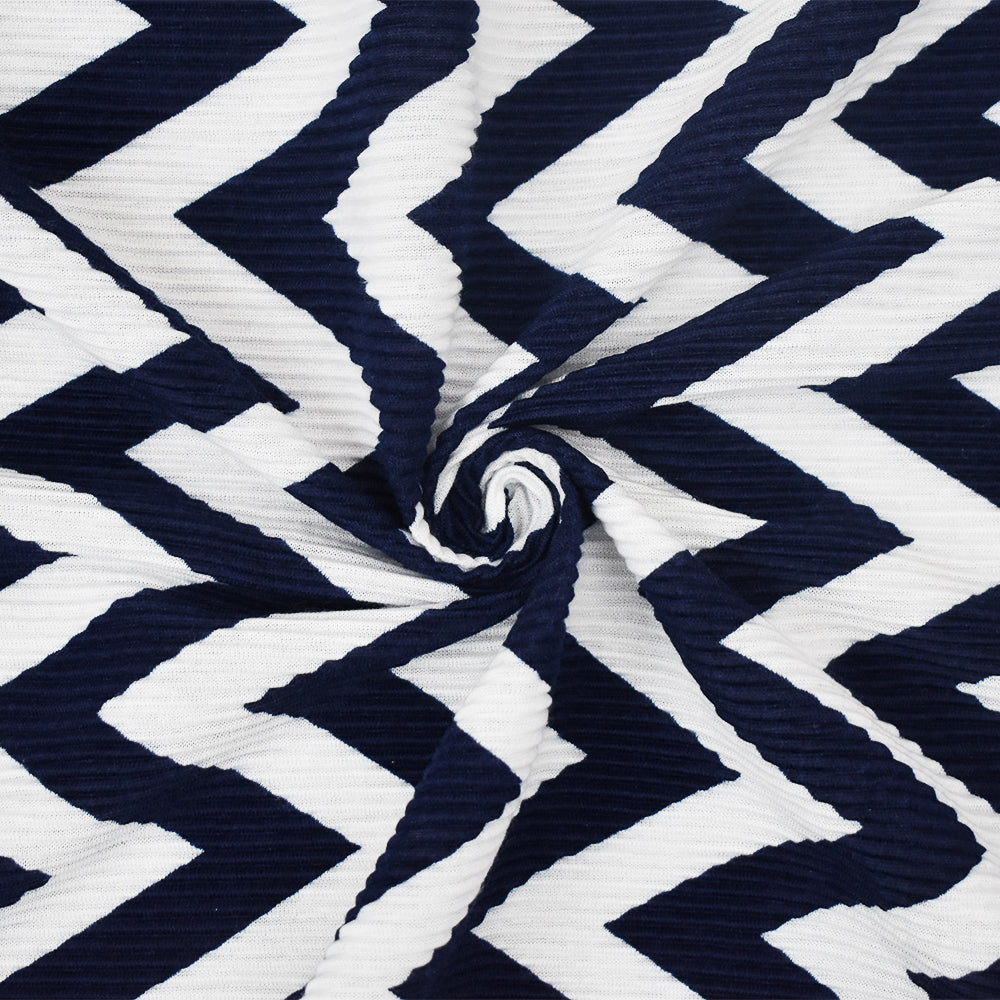 Navy-White Chevron Print Poly Stretch Pressed Pleated Satin Knit Fabric