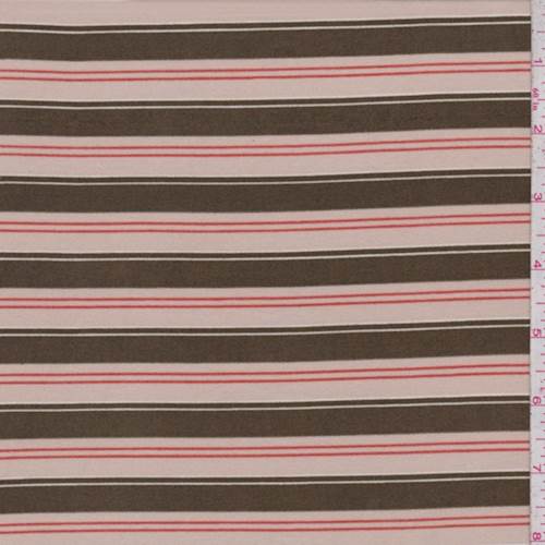 Olive/Beige Stripe Double Brushed Jersey Knit Fabric