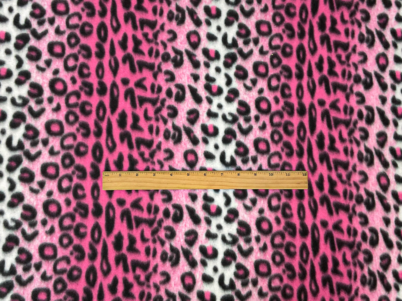 -325G/Y, Pink-Black-White Polyester Leopard Printed Polar Fleece Knit Fabric