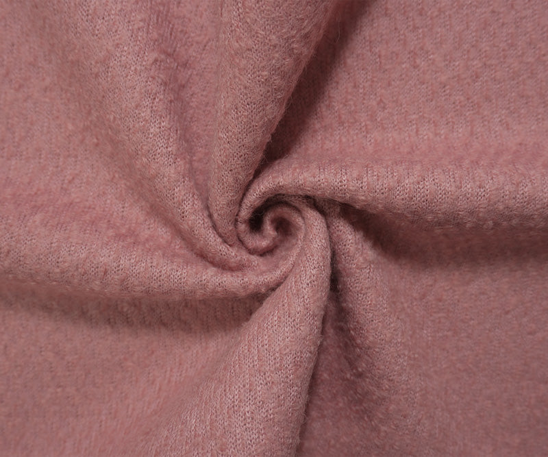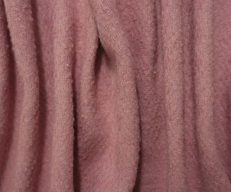 Pink Wool Poly Solid Boucle Knit Coating Fabric