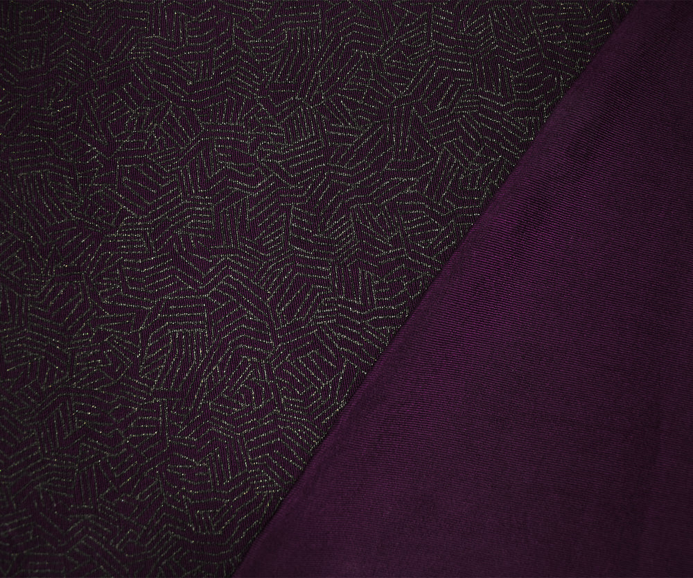 Purple-Gold Acrylic Stretch Spandex Abstract Printed Slinky Knit Fabric