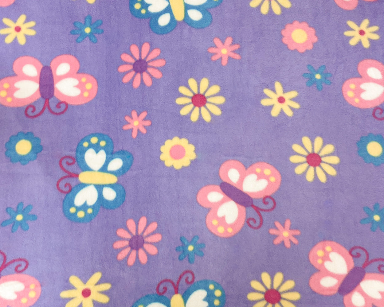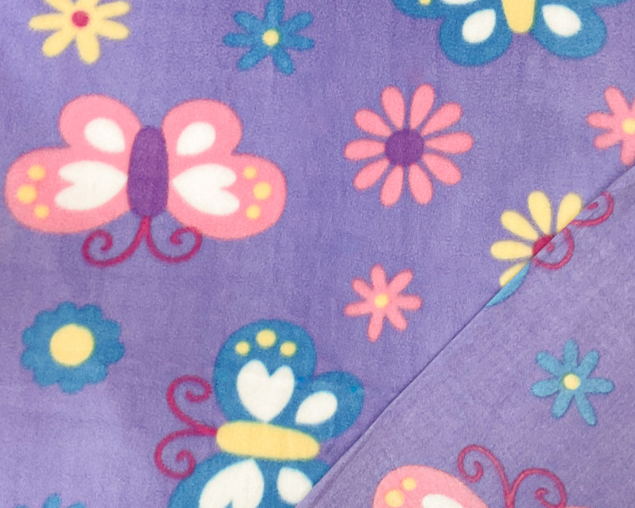 -325G/Y, Purple-Multi Polyester Butterfly Printed Polar Fleece Knit Fabric