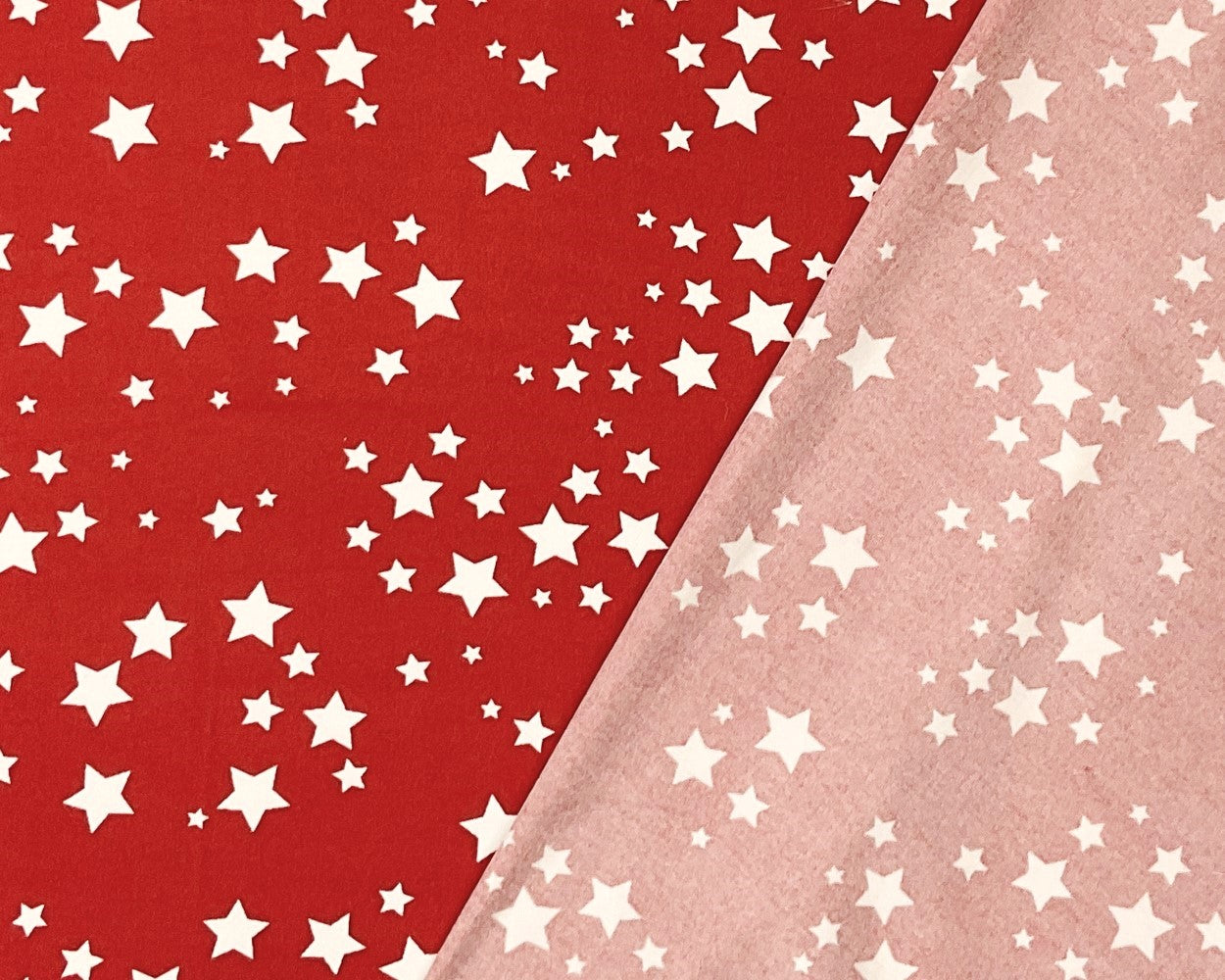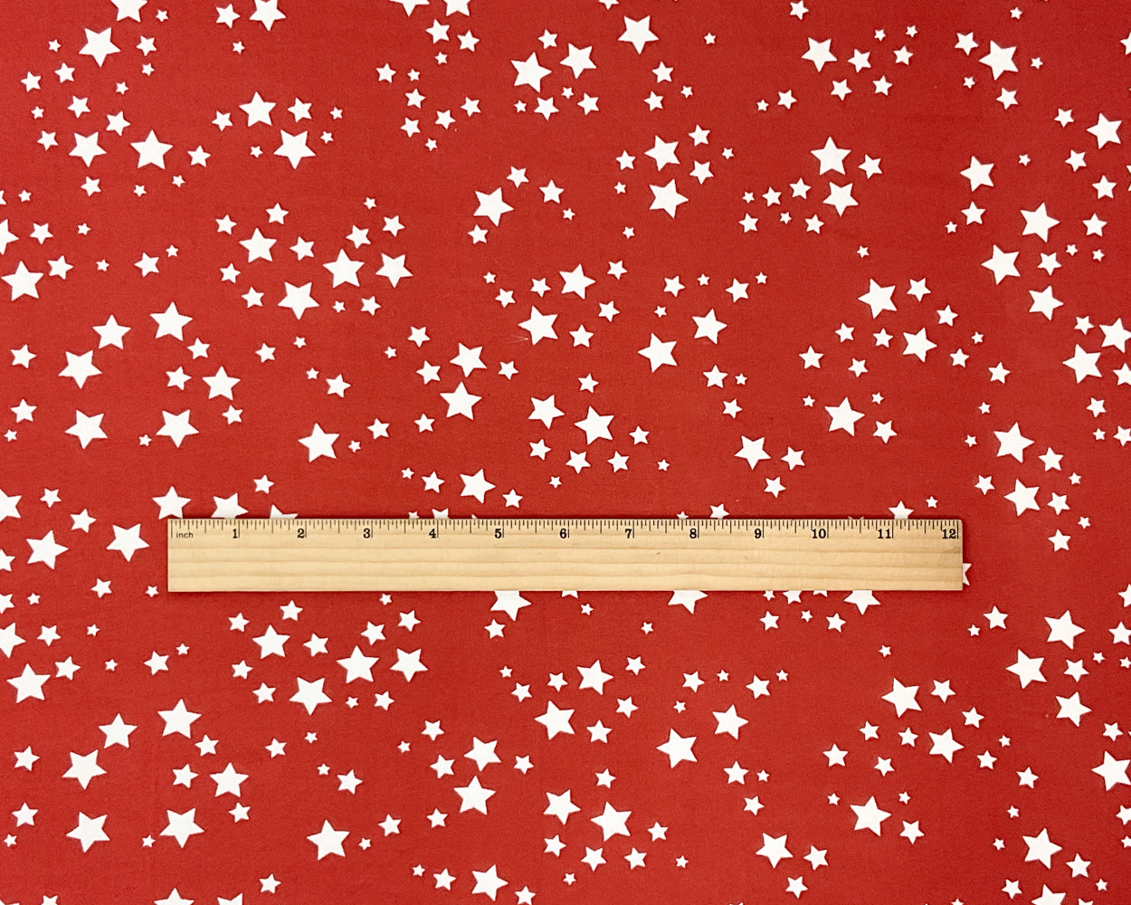 -Red-White Poly Spandex Stretch Star Print Double Brush Jersey Knit Fabric