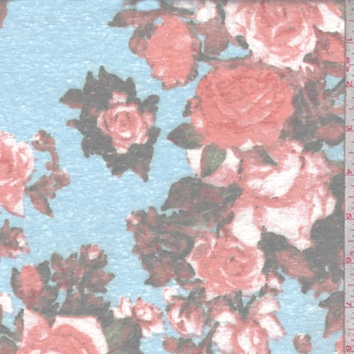 Robin Blue/Salmon Rose Slub Jersey Knit Fabric