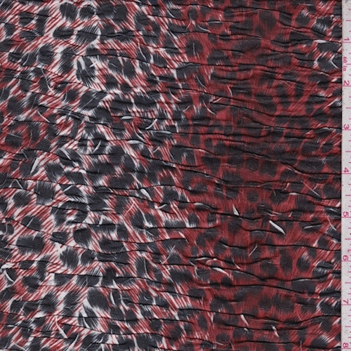 Rust red, black and white cheetah print on a 2 ply polyester pucker knit.