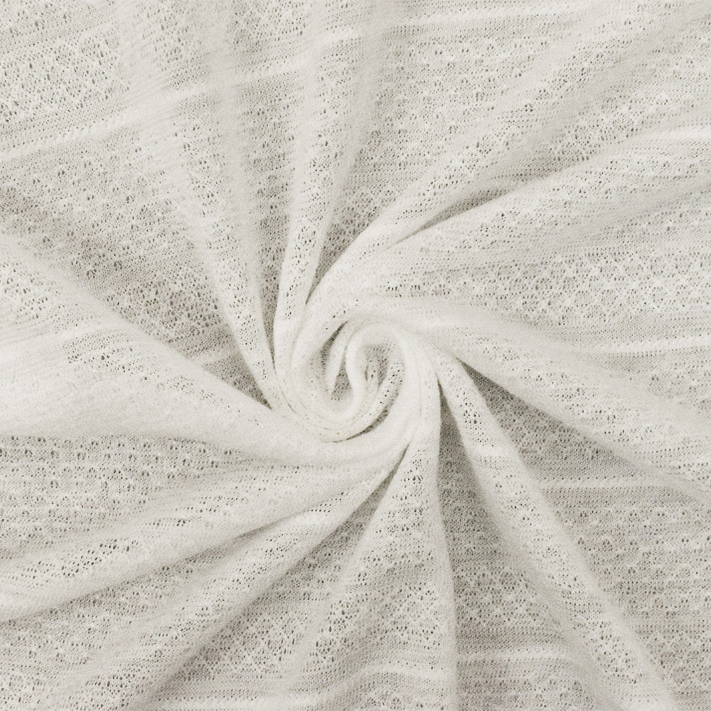 Snow White Patterned Stripe Polyester-Rayon Semi-Sheer Knit Fabric