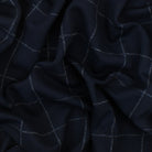 Stark Navy-White Check Printed Polyester Wool Double Knit Fabric