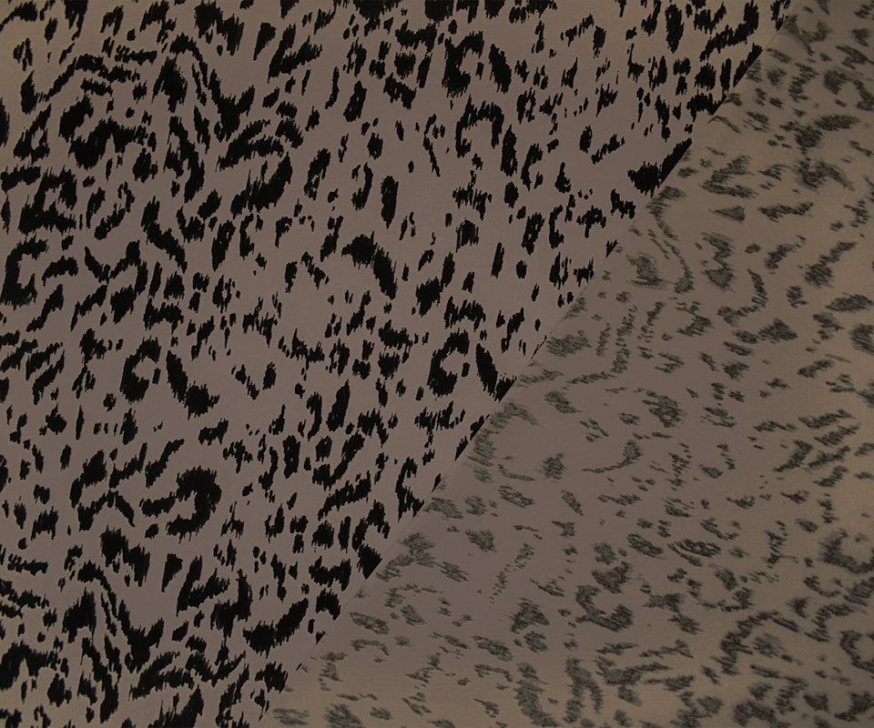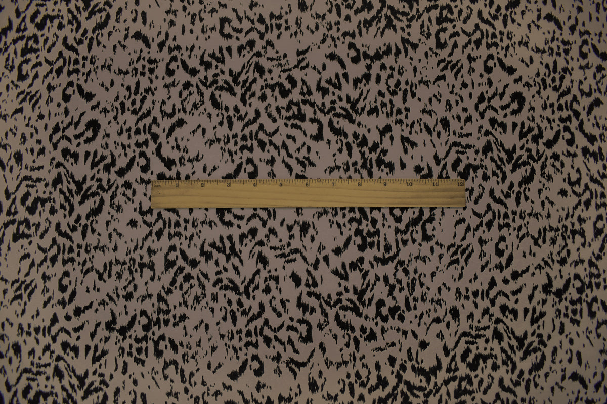 -Poly stretch spandex ITY knit fabric printed with an abstract leopard-like inspired pattern