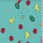 Turquoise Grid/Fruit Double Brushed Jersey Knit Fabric