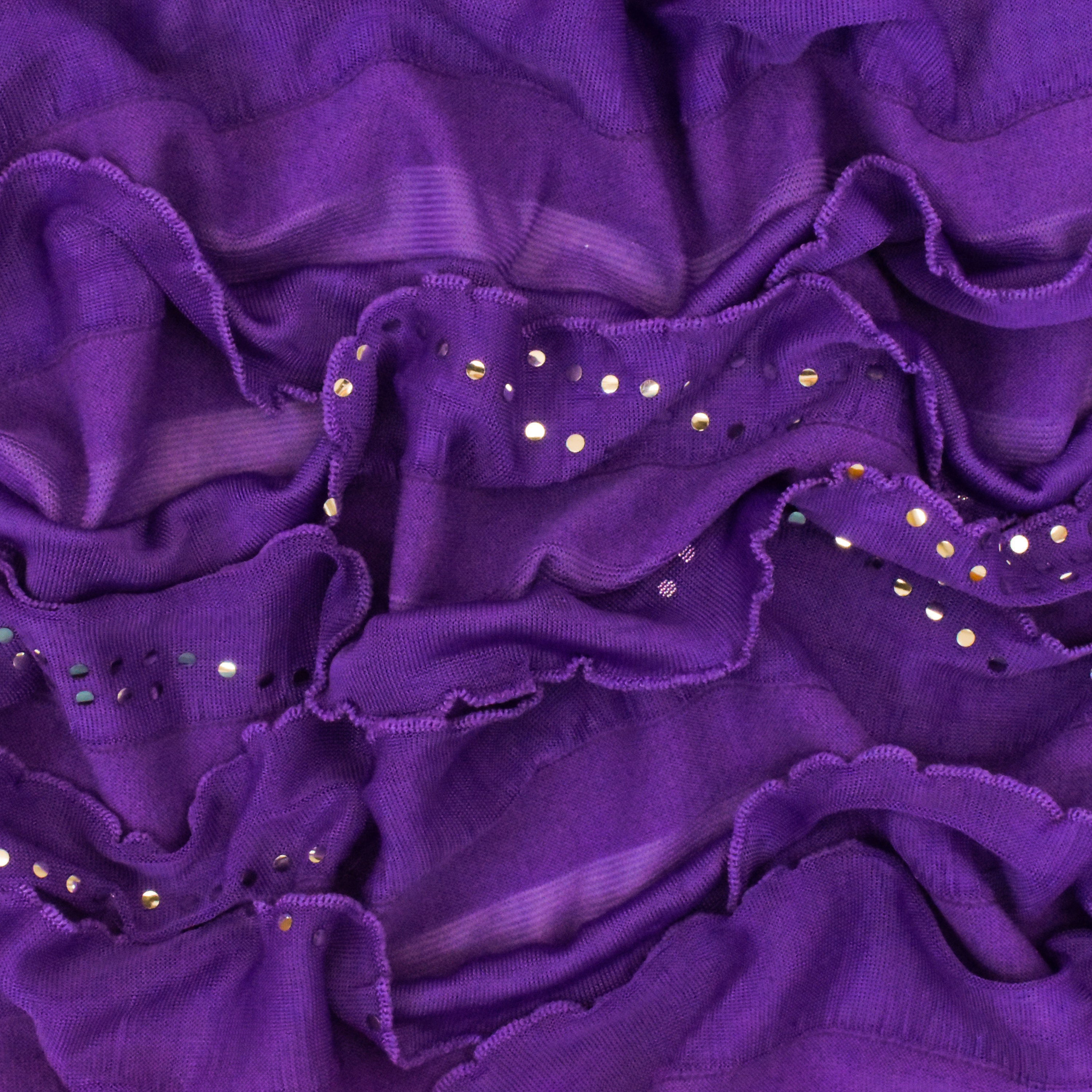 Ultra Purple-Silver Foil Dot Printed Stretch Poly Ruffle Knit Fabric