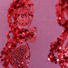 Valentine Red Heart Embroidered Sequin-Fringe Mesh Tulle Fabric