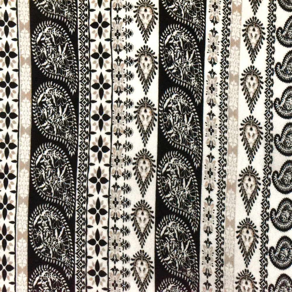 White-Black-Beige Paisley Stripe Printed Rayon Stretch Jersey Knit Fabric
