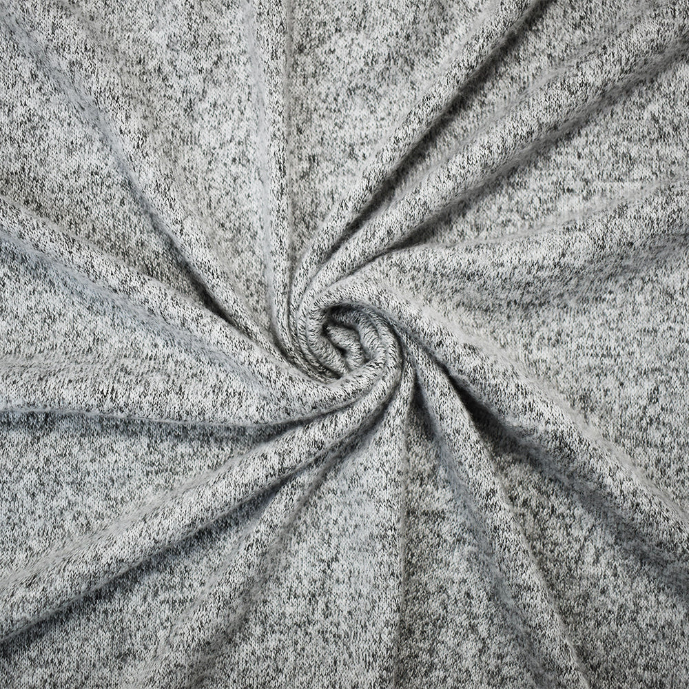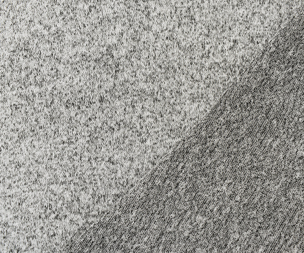 White-Black Cotton Heather Brushed Face Jersey Knit Fabric