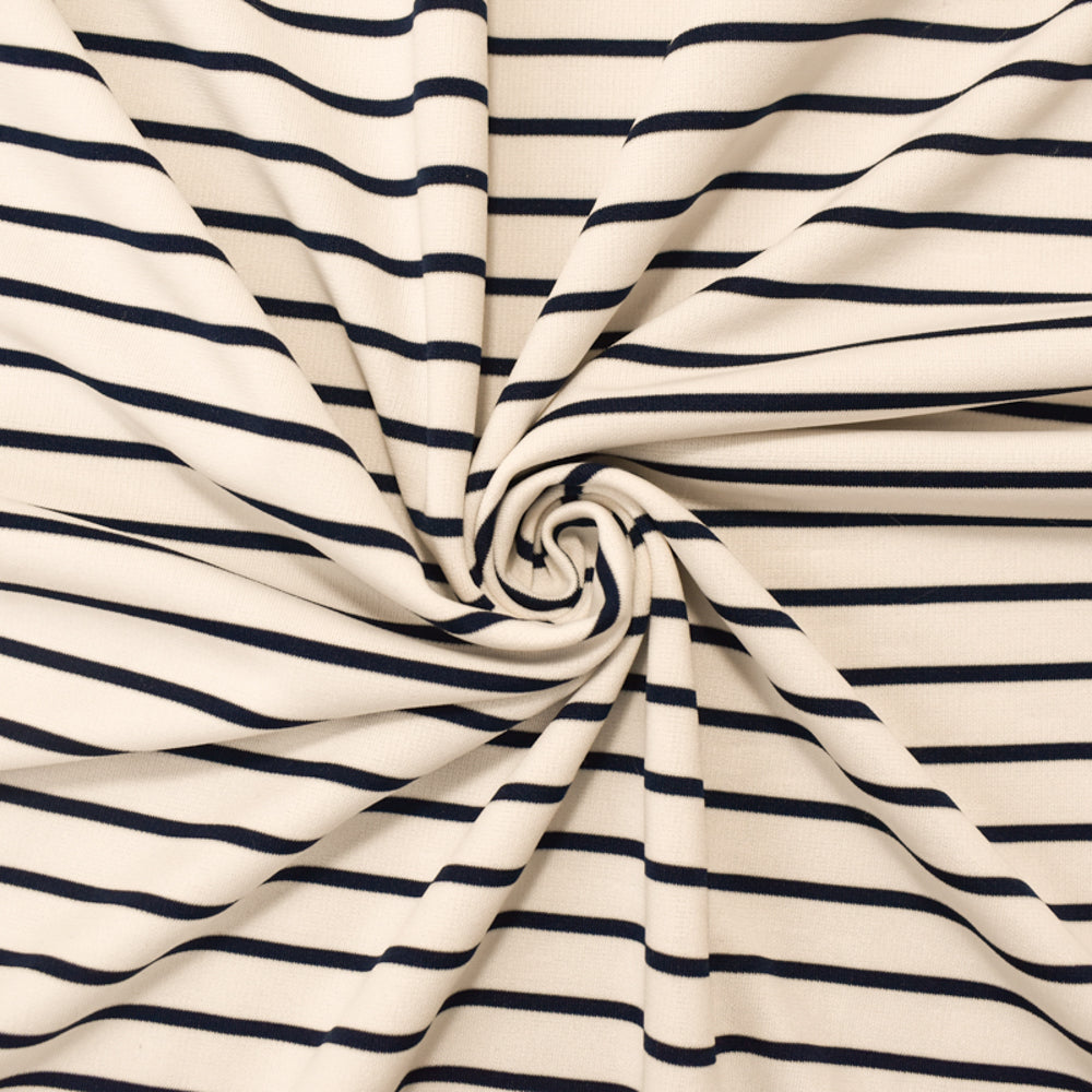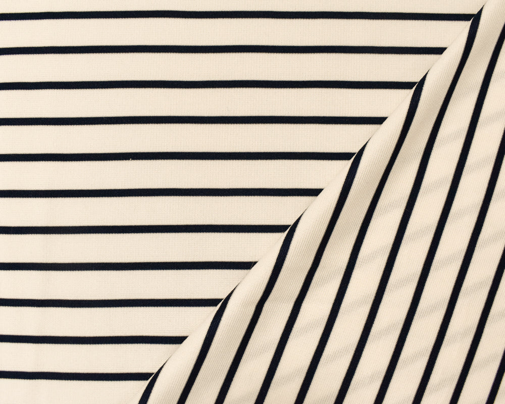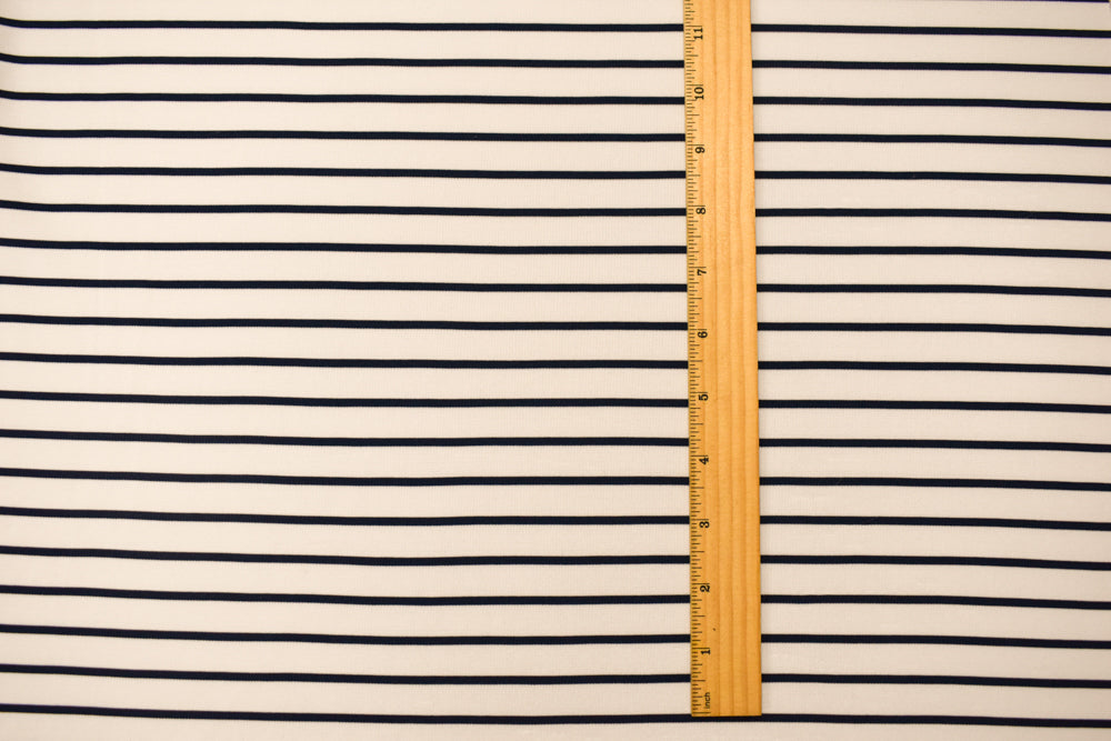 -White-Blue Poly Stretch Spandex Stripe Interlock Knit Fabric
