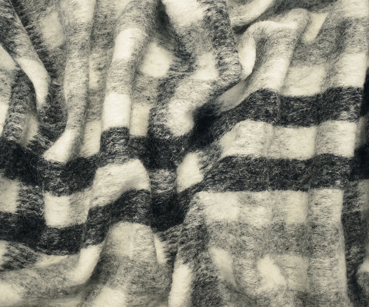 -Premium quality boiled wool and polyester plaid-check pattern knit coating fabric. Made in Italy.