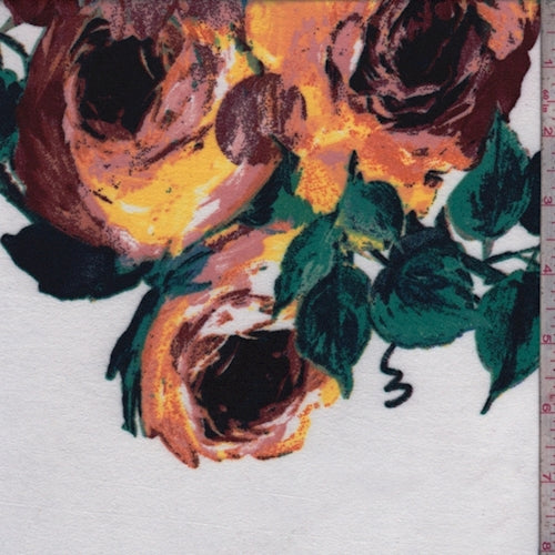 White Large Rose Double Brushed Jersey Knit Fabric