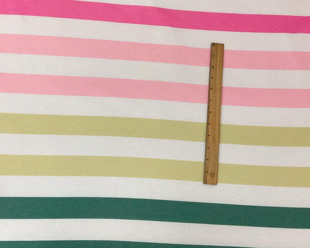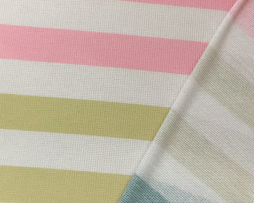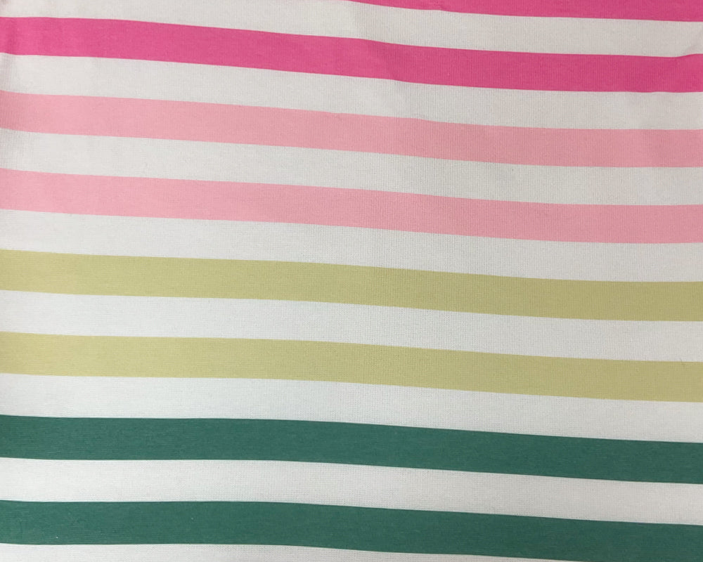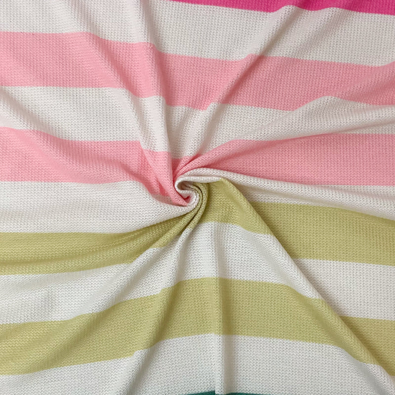 -White-Pink-Multi Poly Rayon Stripe Printed Jersey Knit Fabric