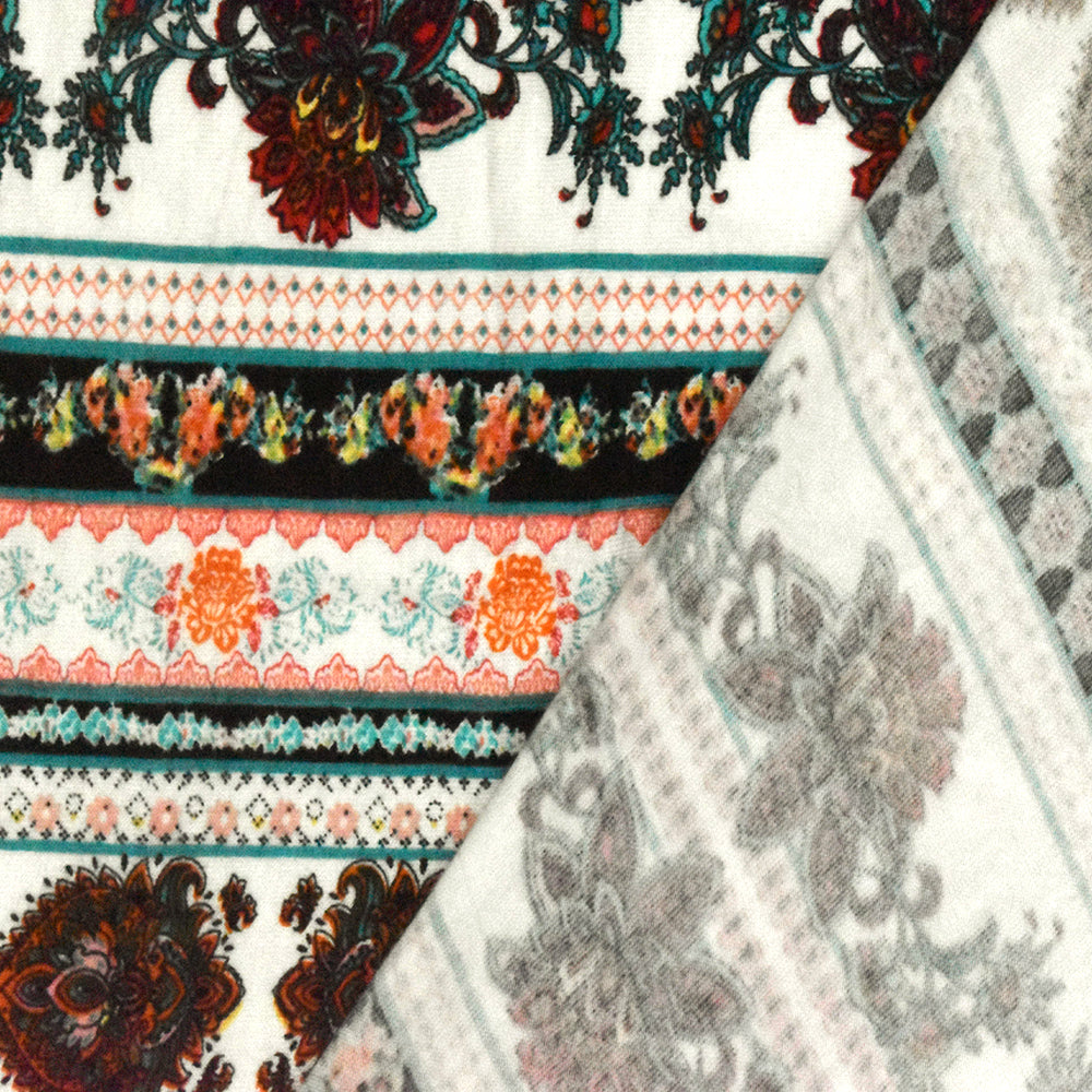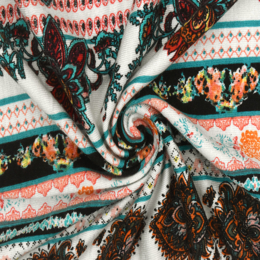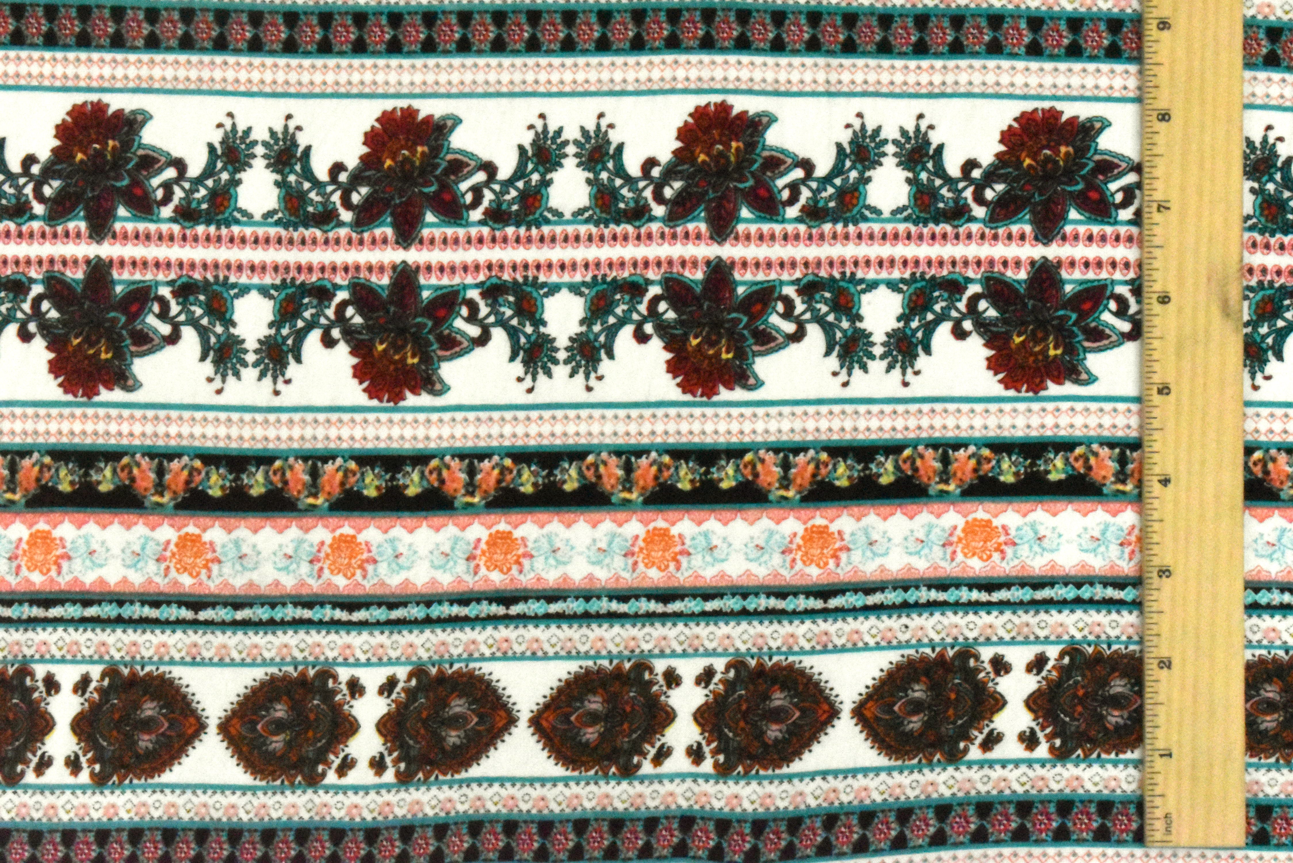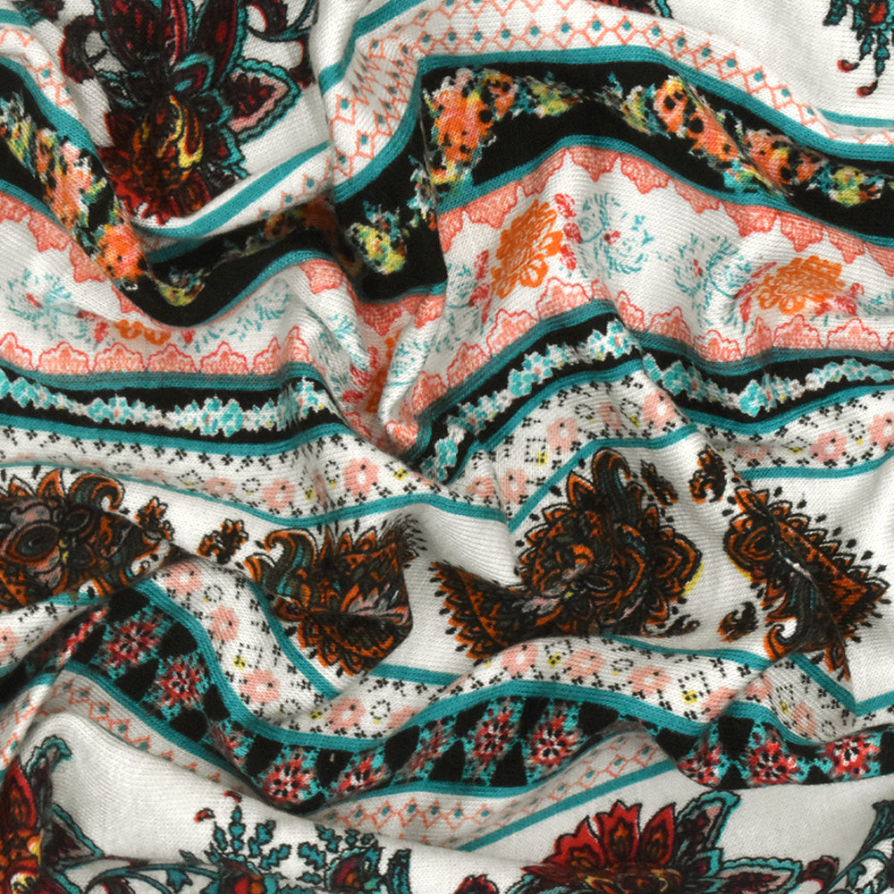 White-Teal-Multi Mix Pattern Stripe Print Rayon Stretch Jersey Knit Fabric