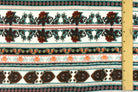 -Low luster floral, crest and moroccan pattern in a striped arrangement printed on a stretch jersey knit fabric