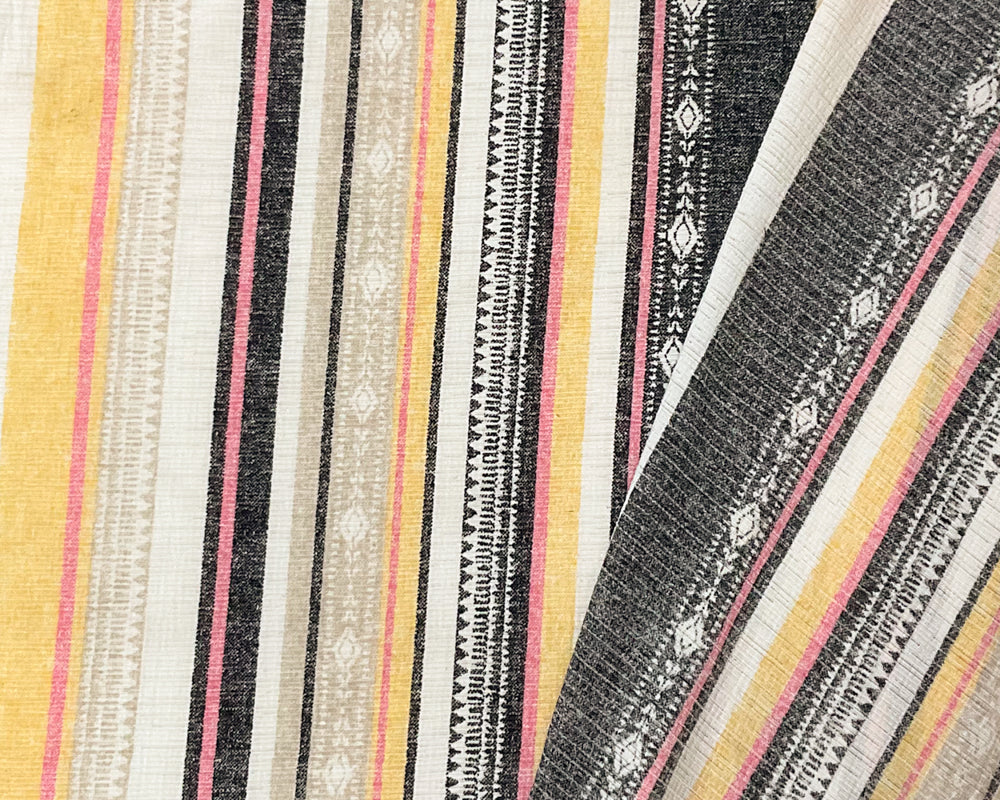 -Yellow-Beige-Multi Poly Stretch Spandex Stripe Printed Slub Knit Fabric