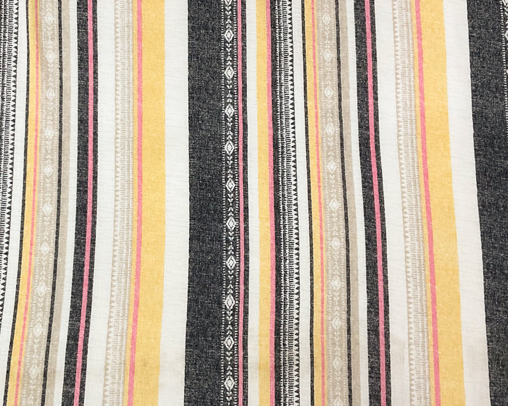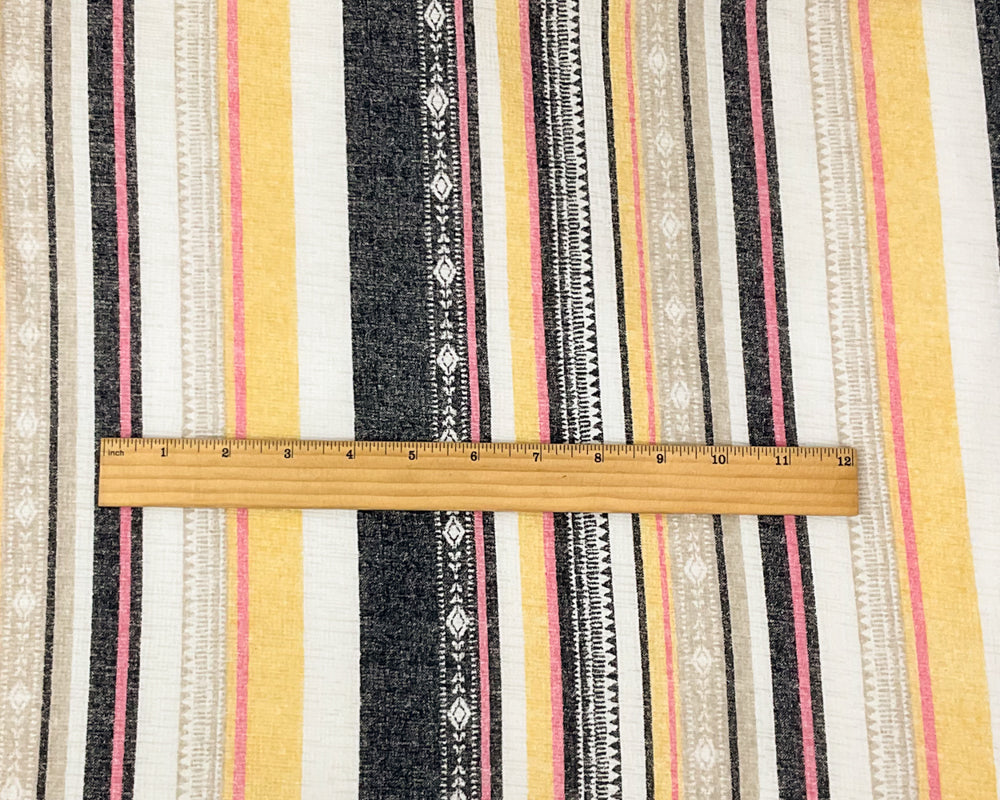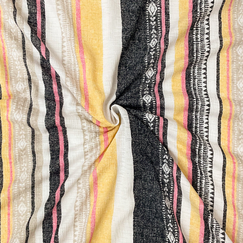 Yellow-Beige-Multi Poly Stretch Stripe Printed Slub Knit Fabric