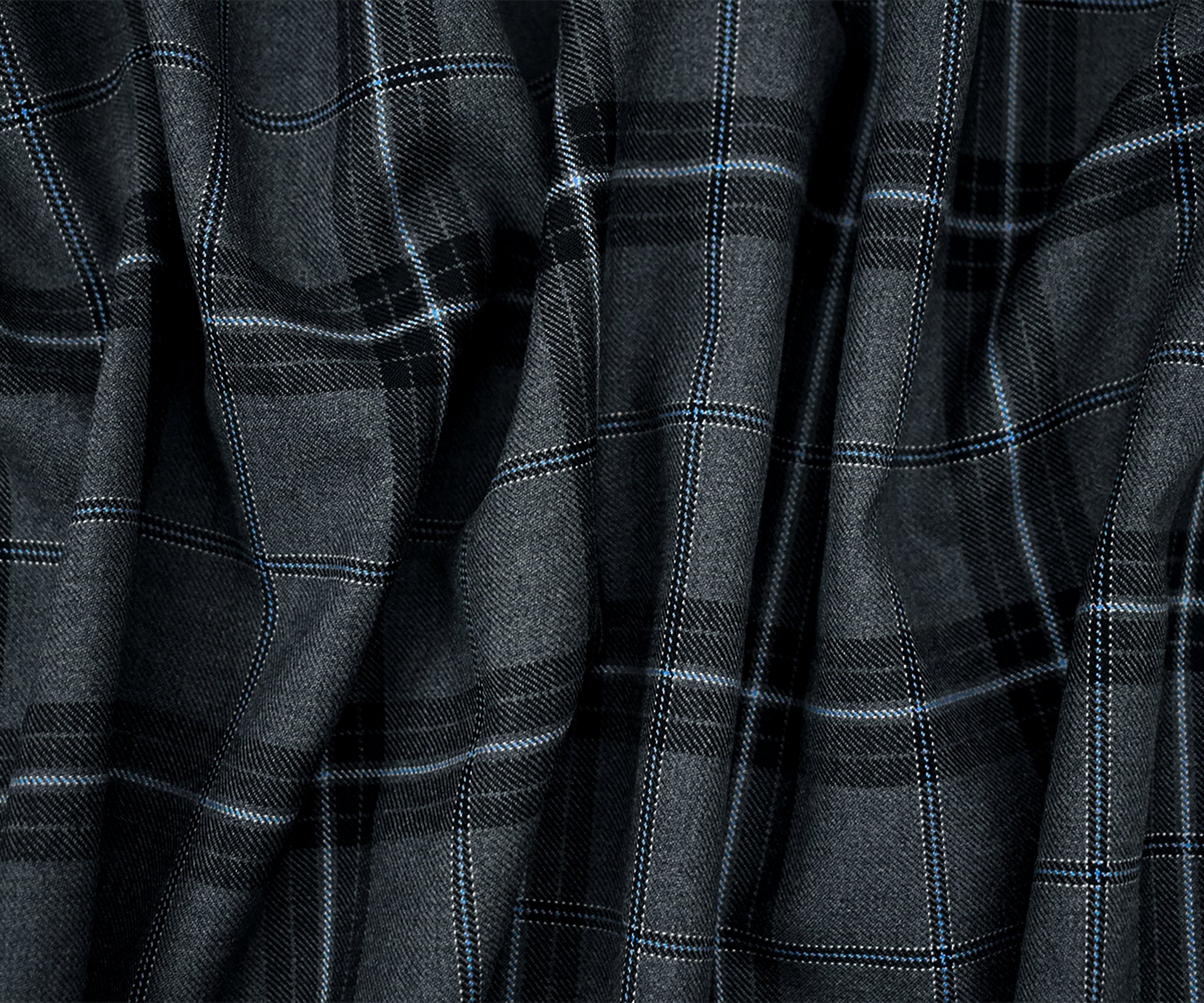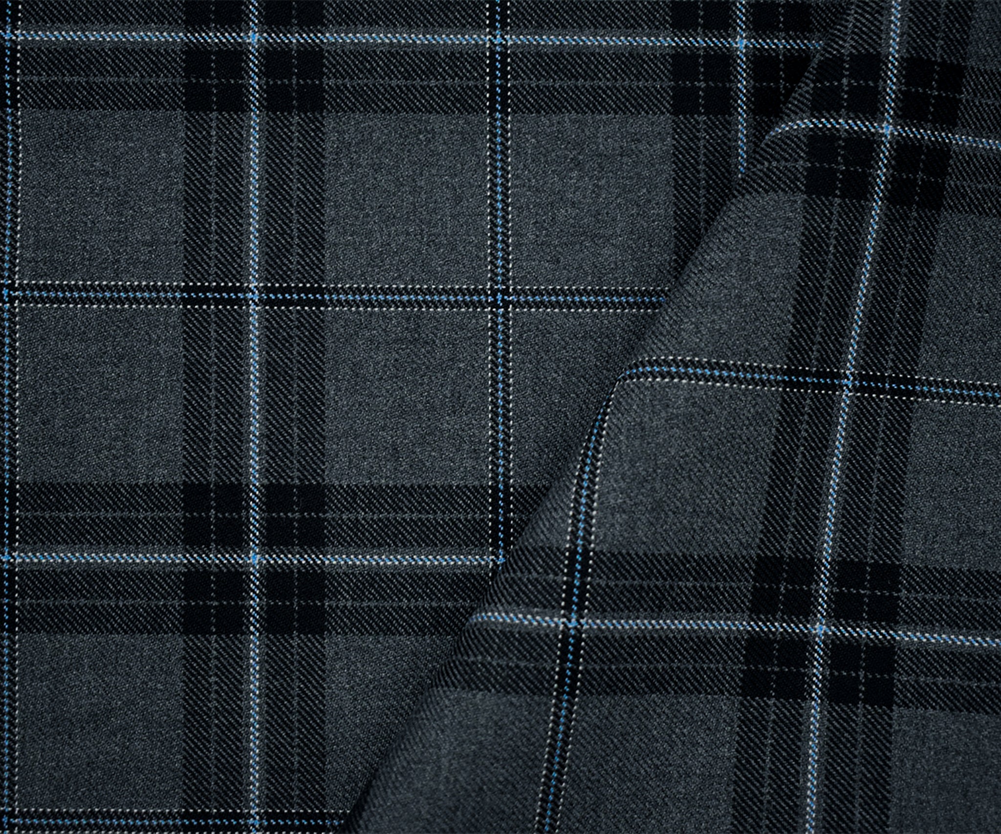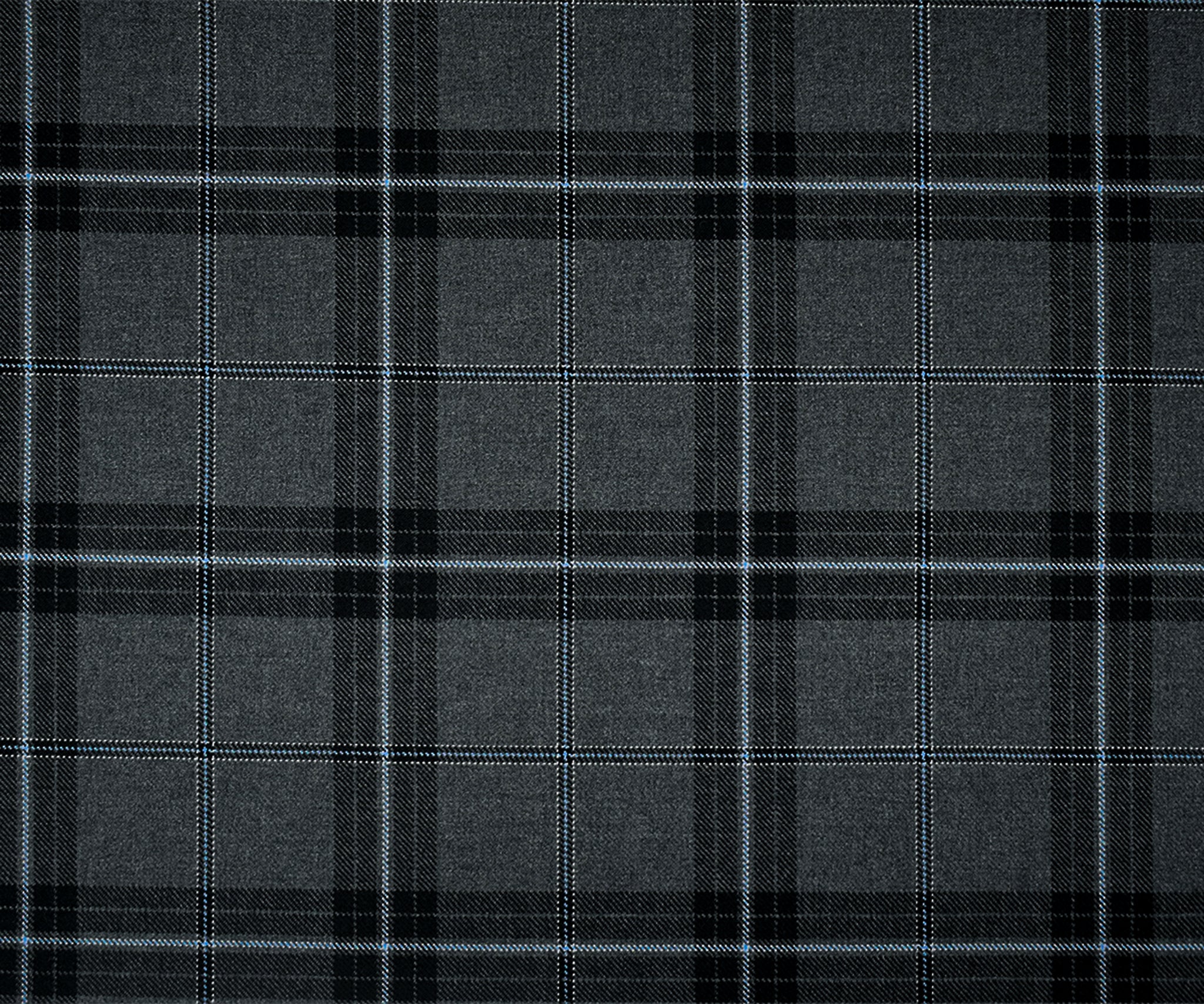 Black-Blue-Gray Poly-Wool Plaid Twill Suiting Woven Fabric